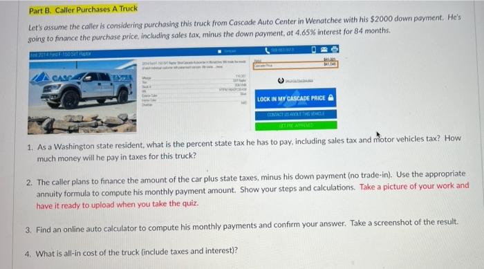 Part B Caller Purchases A Truck Let S Assume The Chegg Com